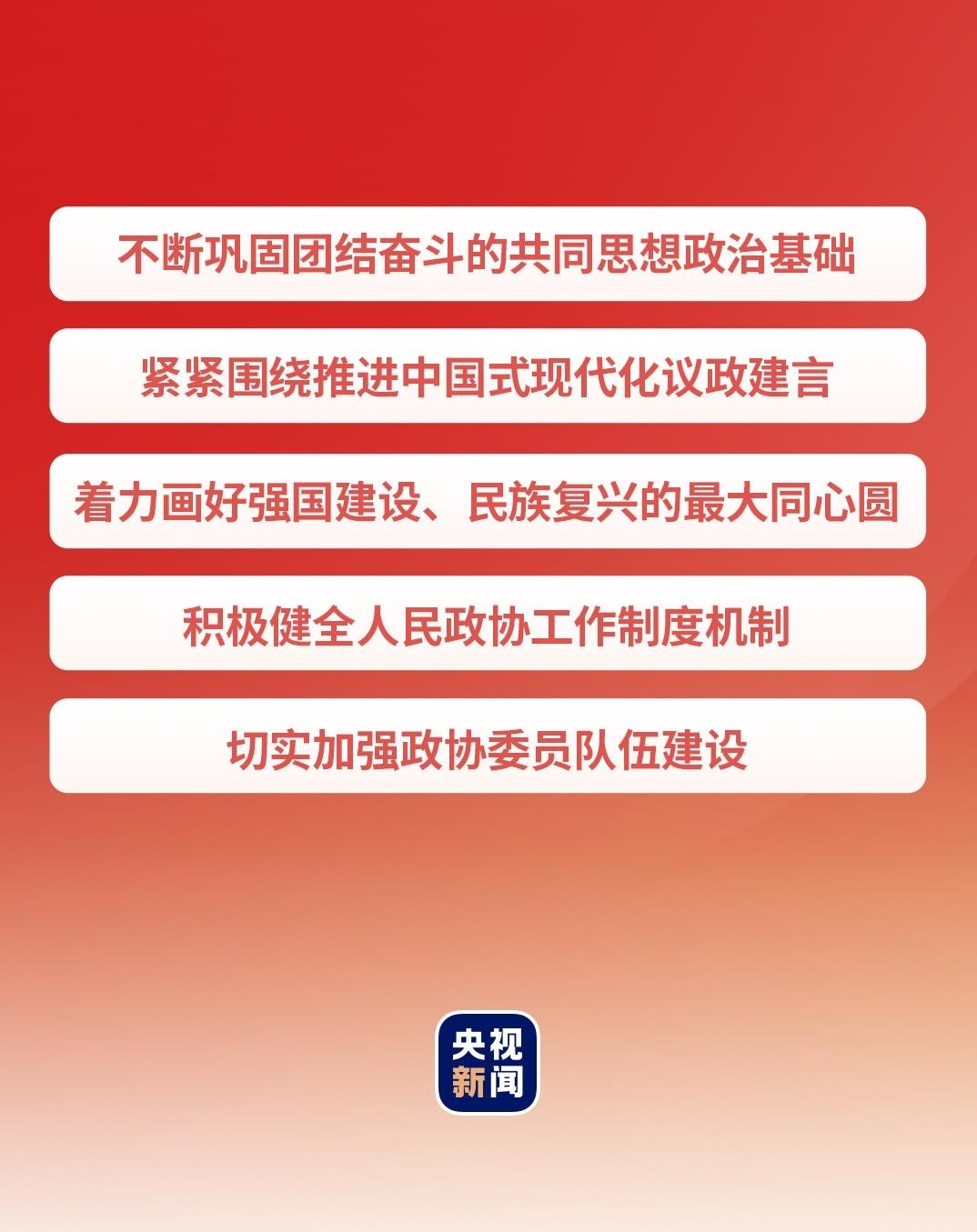 在這次慶祝大會上,習(xí)近平總書記從5個方面提出要求,寄望人民政協(xié)發(fā)揚優(yōu)良傳統(tǒng),牢記政治責(zé)任,堅持黨的領(lǐng)導(dǎo)、統(tǒng)一戰(zhàn)線、協(xié)商民主有機結(jié)合,充分發(fā)揮專門協(xié)商機構(gòu)作用,為推進中國式現(xiàn)代化廣泛凝聚人心、凝聚共識、凝聚智慧、凝聚力量。