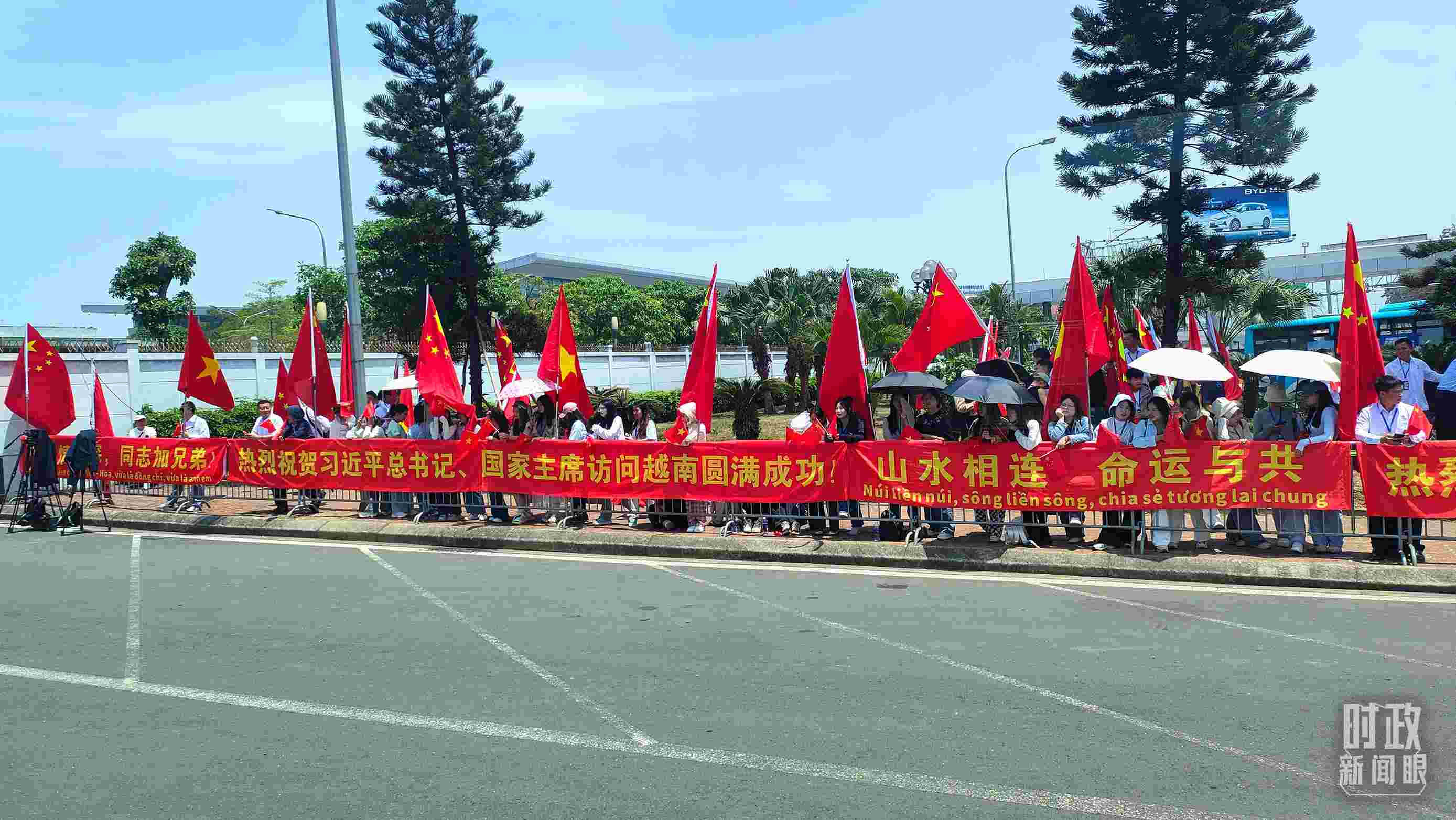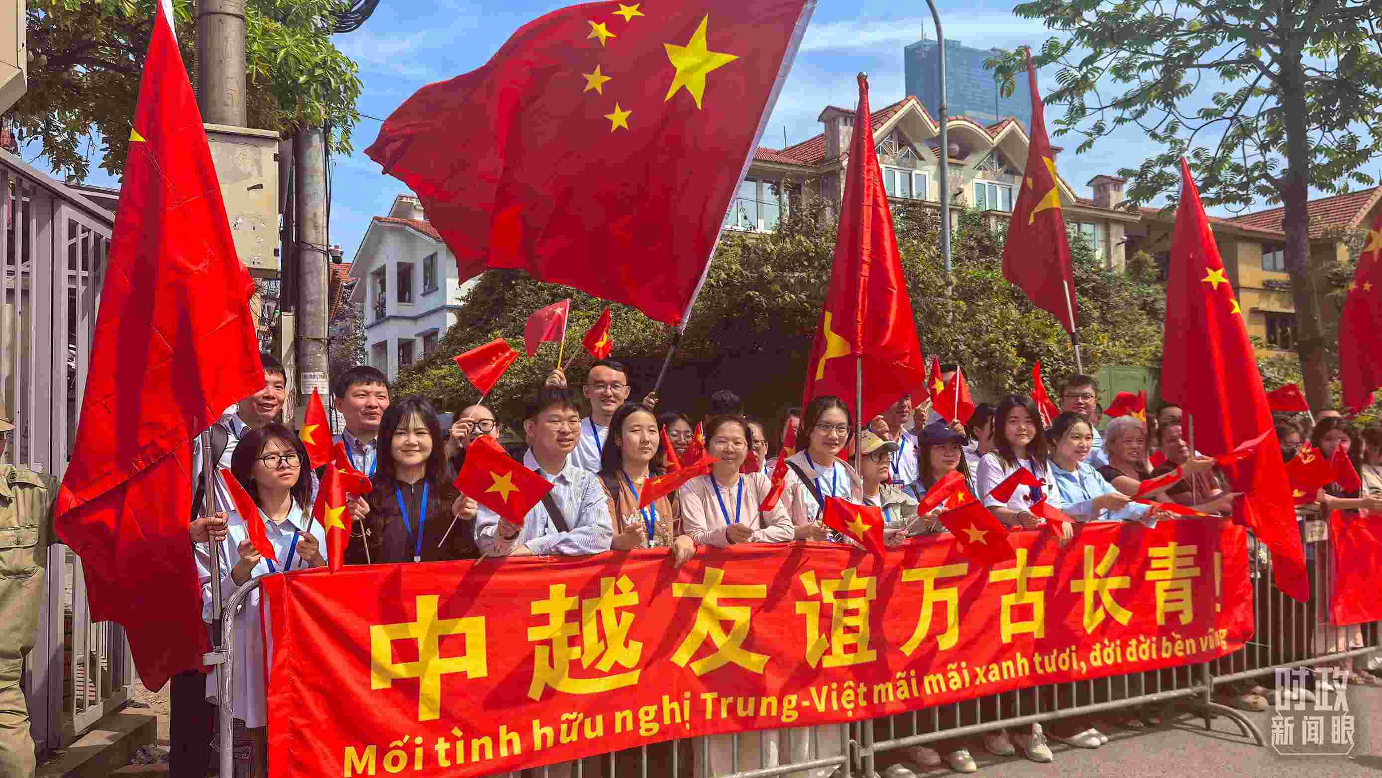 △ 民眾沿途揮舞中越國旗。(總臺央廣記者劉會民拍攝)