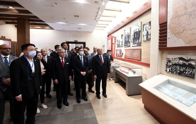 6月3日,阿拉伯國家駐華使節(jié)及阿盟駐華代表處代表等在西柏坡紀(jì)念館參觀。新華社記者王曉攝