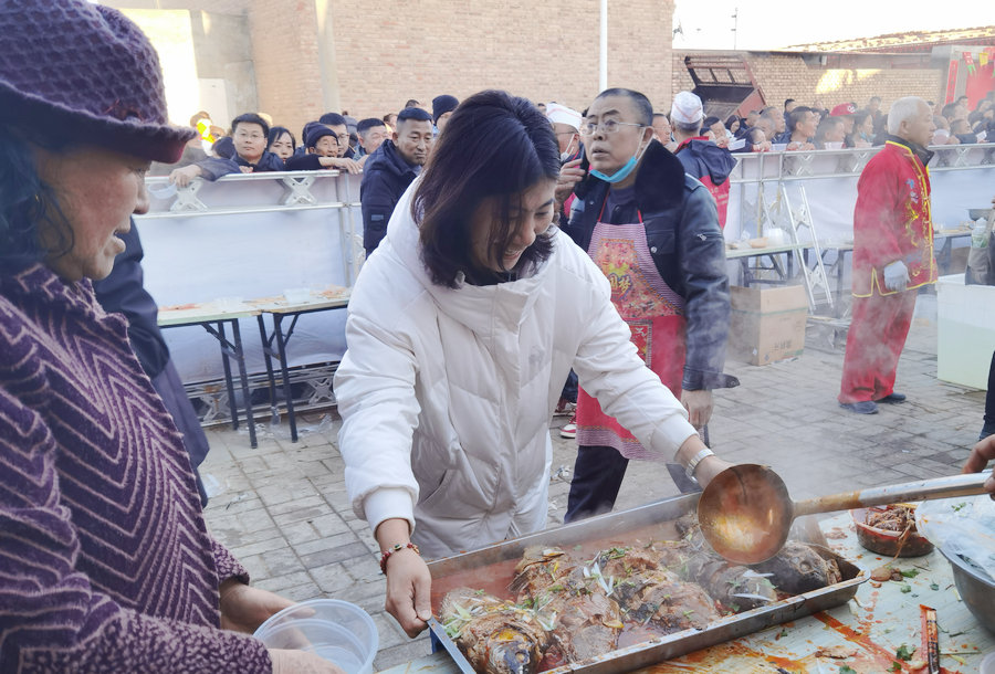 河口村“黃河老劉燉魚”還利用“黃河幾字彎非遺燉魚第一鍋”為老百姓獻上2000斤燉魚和200斤油炸糕、500斤豆腐+500斤粉條制作的托縣非遺粉湯,讓游客免費品嘗、共享元宵節(jié)大餐。
