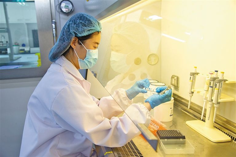 金宇保靈生物藥品有限公司科研人員正在獸用疫苗國(guó)家工程實(shí)驗(yàn)室做實(shí)驗(yàn)。
