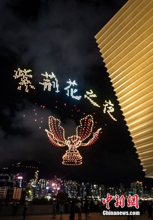 6月22日晚間,“紫荊花之夜”無人機燈光創(chuàng)意秀在香港故宮文化博物館畔的海面上空舉行,2000架無人機演繹多個與“端午節(jié)”相關的圖案,點亮香港夜空。