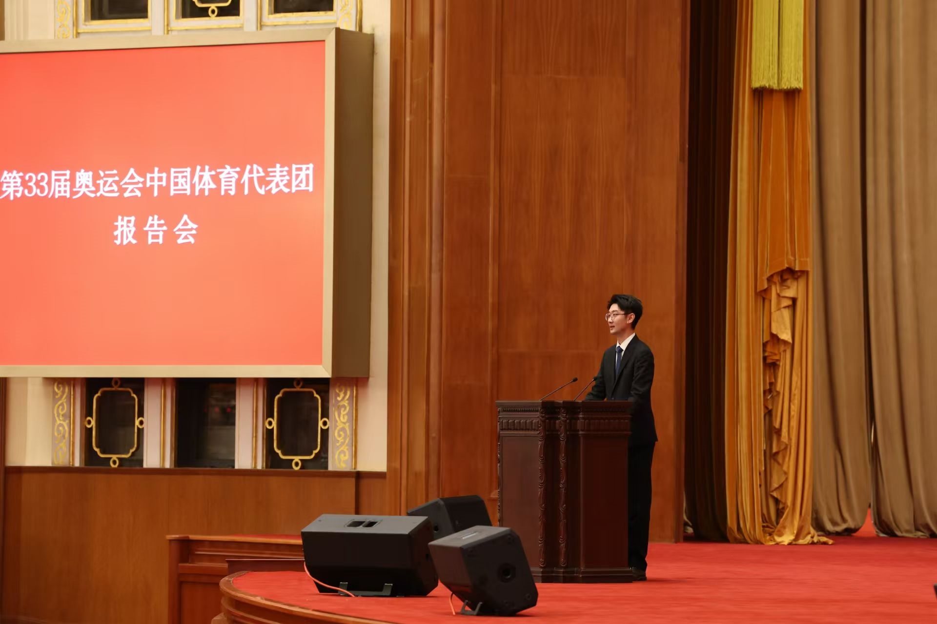 11月15日下午,中央宣傳部、國(guó)家體育總局在人民大會(huì)堂舉行第三十三屆奧運(yùn)會(huì)中國(guó)體育代表團(tuán)報(bào)告會(huì)。人民日?qǐng)?bào)社體育部記者孫龍飛作為報(bào)告團(tuán)成員,講述了自己在一線報(bào)道巴黎奧運(yùn)會(huì)的經(jīng)歷。