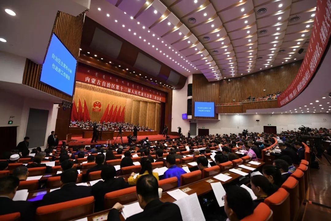 1月12日上午,內(nèi)蒙古自治區(qū)第十三屆人民代表大會第三次會議在內(nèi)蒙古人民會堂開幕。內(nèi)蒙古自治區(qū)主席布小林作政府工作報告。