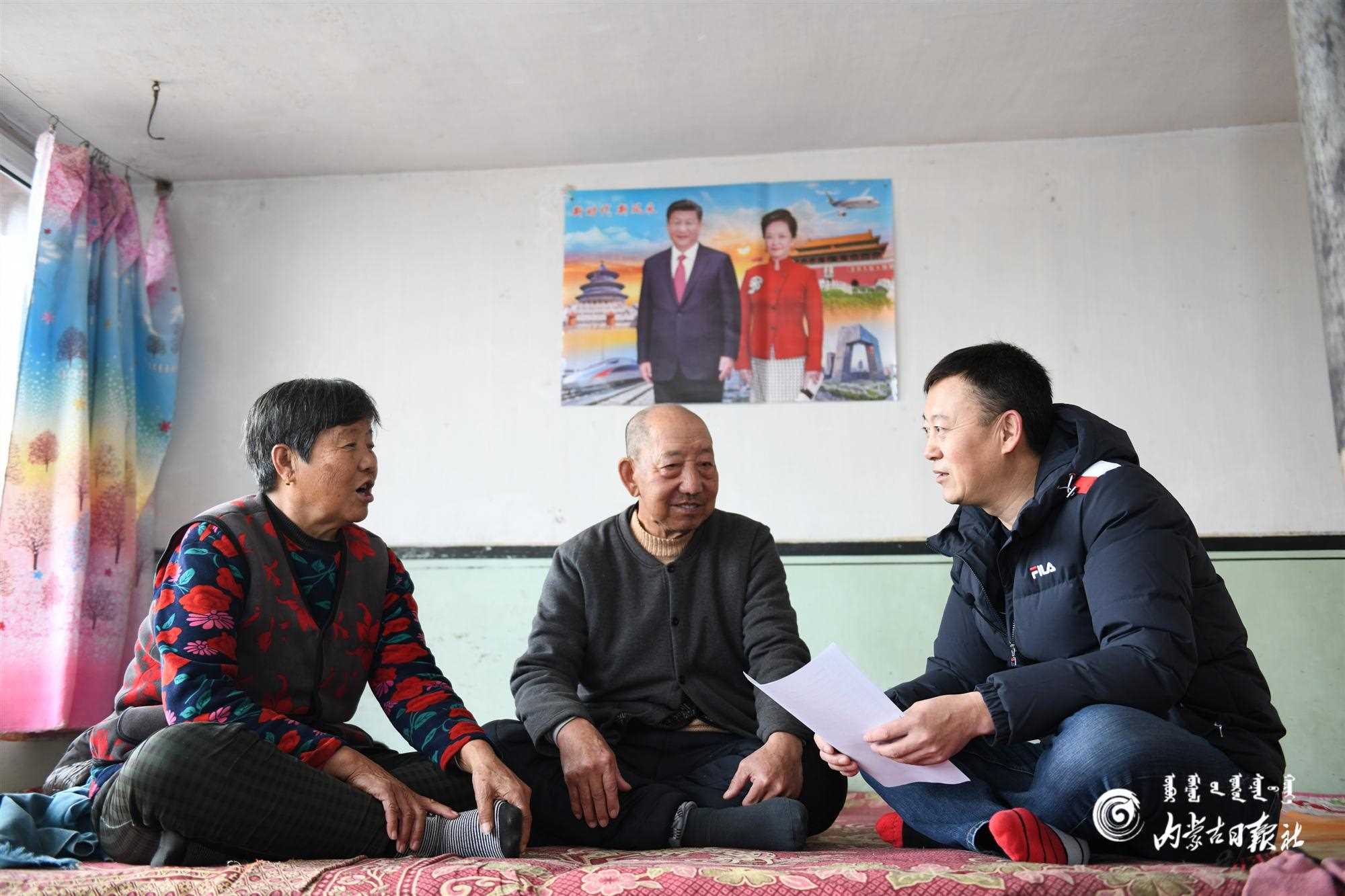 土默特左旗塔布賽鄉(xiāng)駐塔布賽村第一書(shū)記王浩軍到貧困戶家中了解情況。