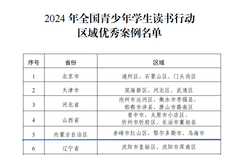 近日,教育部公布2024年全國(guó)青少年學(xué)生讀書行動(dòng)區(qū)域優(yōu)秀案例名單。經(jīng)內(nèi)蒙古自治區(qū)教育廳推薦,烏海市申報(bào)的《烏海市:持續(xù)完善五個(gè)機(jī)制